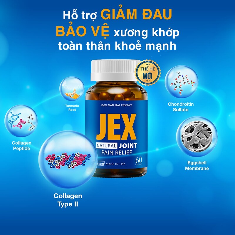 Nhờ ứng dụng thành tựu của ngành sinh học phân tử, các nhà khoa học Mỹ tìm ra công thức mới đột phá từ bộ tinh chất quý thiên nhiên như Eggshell Membrane, Turmeric Root, Chondroitin Sulfate, Collagen Type 2 không biến tính, Collagen Peptide thủy phân,… (trong JEX thế hệ mới) có khả năng kiểm soát hoạt động của các yếu tố gây viêm (TNF-α, interleukin 1, interleukin 6, interferon gamma…), không làm viêm tiến triển. Từ đó, giúp hỗ trợ giảm đau, bảo vệ xương khớp chắc khỏe và phòng tránh một số biến chứng do bệnh gây ra.